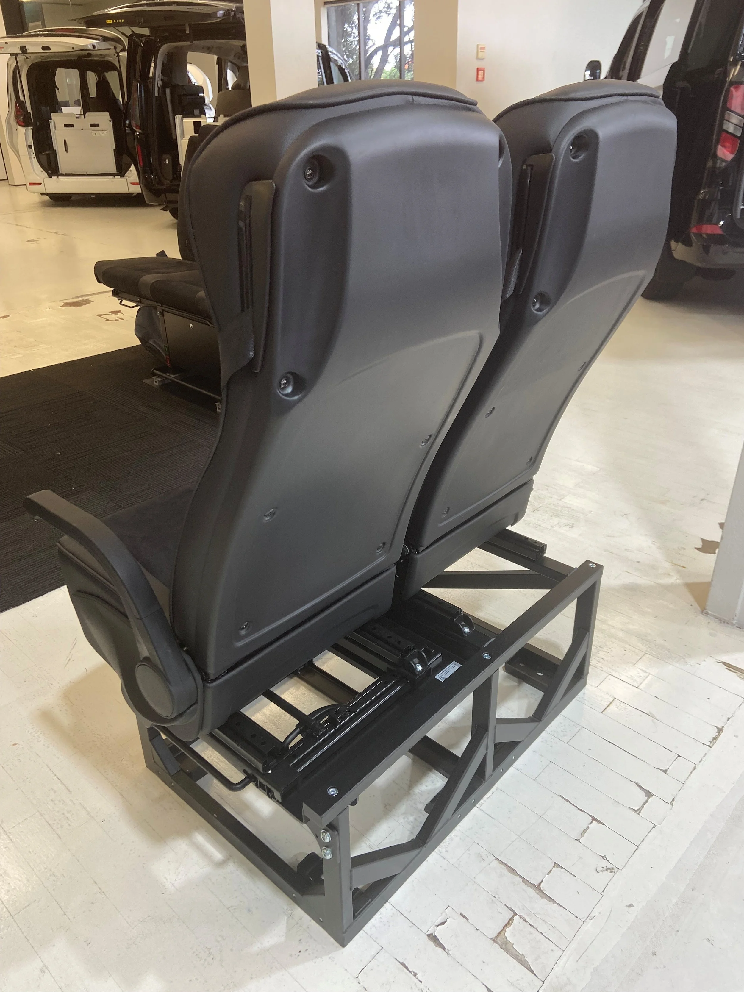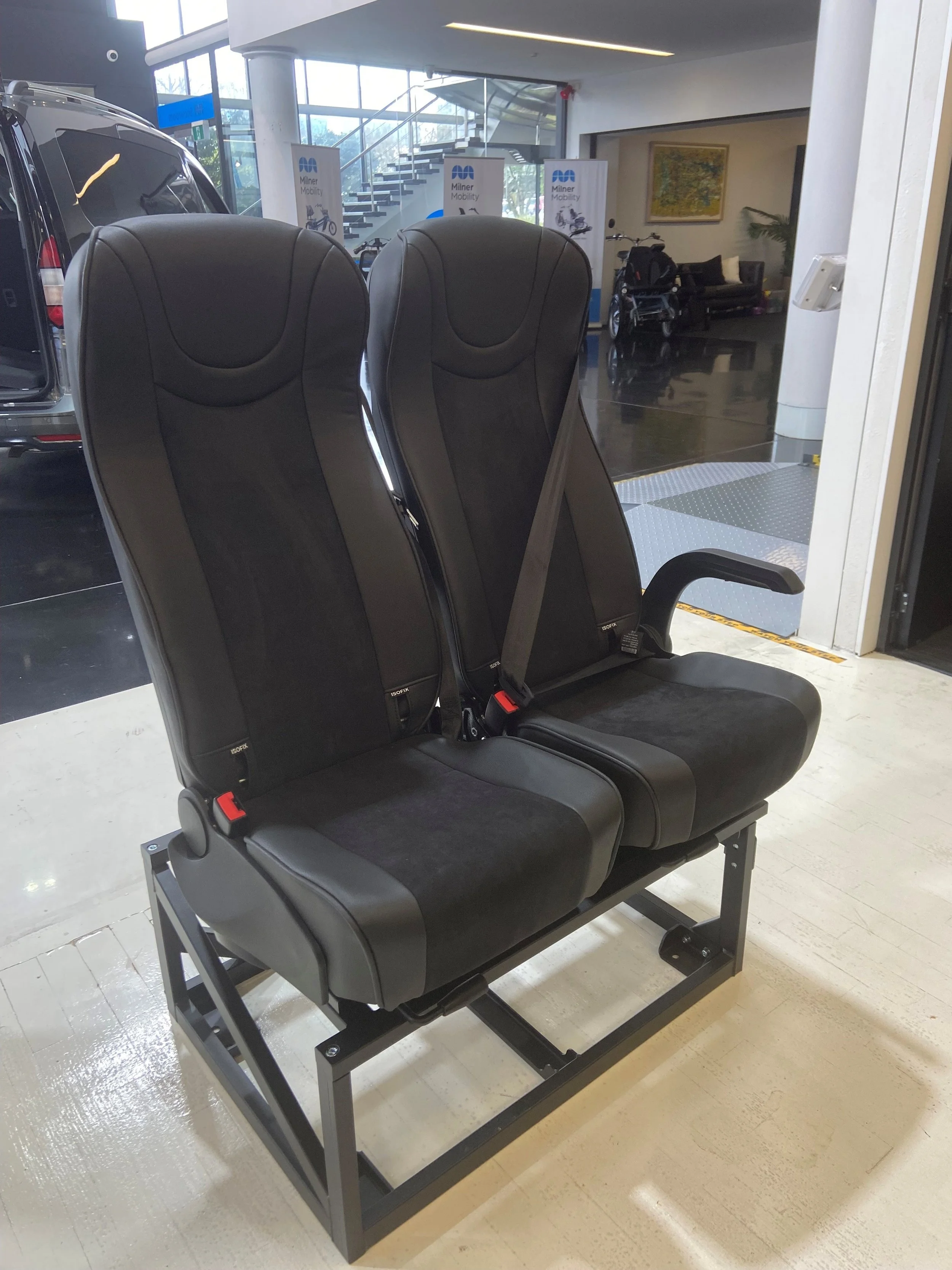 This innovative two-seater bench offers the comfort of individual seats with lateral and longitudinal adjustment for added space and flexibility. Featuring reclining backrests, integrated 3-point seatbelts, Isofix and Top Tether systems, and built-in under-seat storage, it’s fully certified for M1 and N1 vehicles and available for both RHD and LHD layouts.